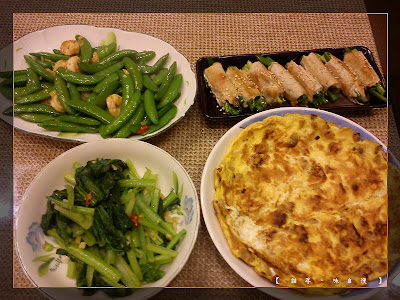 另外三個菜是高鈣油菜,以及菜圃蛋和蝦仁甜豆
