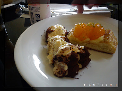 | 我們的甜點盤,可頌和巧克力蛋糕很好吃 (可頌被咬了一半XD) |