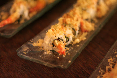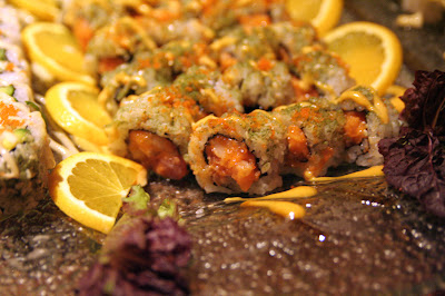 主辦單位非常貼心,一盤盤創意壽司無限取用,有加州捲、炸蝦壽司、霜降中捲佐黃瓜、甜椒星鰻捲以及香煎鮭魚捲...等,花酒藏的料理果然名不虛傳,尤其是香煎鮭魚捲 ,考得焦香酥脆的米飯沾上特製醬汁,讓人意猶未盡!而甜椒星鰻捲的創意好滋味則讓人驚艷無比。