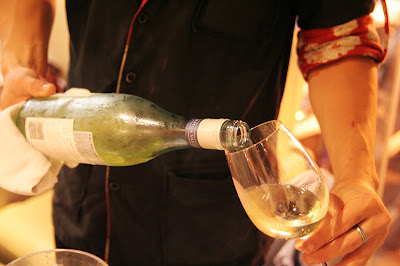 今天的品酒會是紐西蘭貿易發展中心發起,英卓美食網主辦,選在一間以清酒為主的居酒屋辦白葡萄酒趴,除了表現出對自家酒品的絕對信心之外,更傳達了白葡萄酒不僅適合搭配西式料理,與日本料理也是絕配,而且白葡萄酒要冰鎮後喝,品酒師艾哲庸(John H. Jsacs)說白酒最適合飲用的溫度是8度C,而壽司剛好也是冷料理,在這動不動就37度的炎炎夏日,還有比這更棒的配對嗎?誰說吃日本料理就得喝清酒?來杯白葡萄酒吧!你不會失望的。